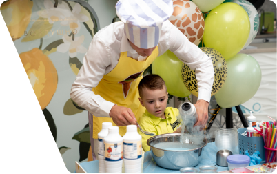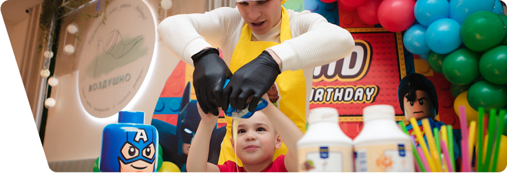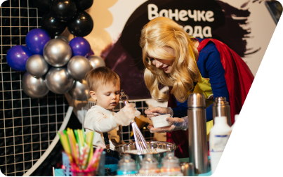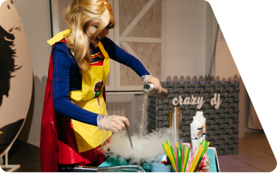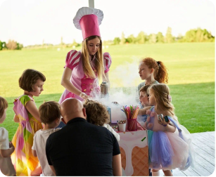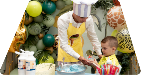 Пожалуй, самая вкусная программа для любого праздника. Наши мастера-артисты на ваших глазах приготовят из натуральных сливок и секретного ингредиента вкуснейшее мороженое. Продукт абсолютно безвреден для маленьких сладкоежек, ведь всё сделано только из натуральных продуктов. Процесс так же безопасен для юных зрителей и их родителей, мы соблюдаем технику безопасности. После приготовления уже застывшее мороженое раскладывается по креманкам, а маленькие гости сами украшают его посыпками и топпингом на выбор. Ну а в конце все пробуют лакомство на вкус!